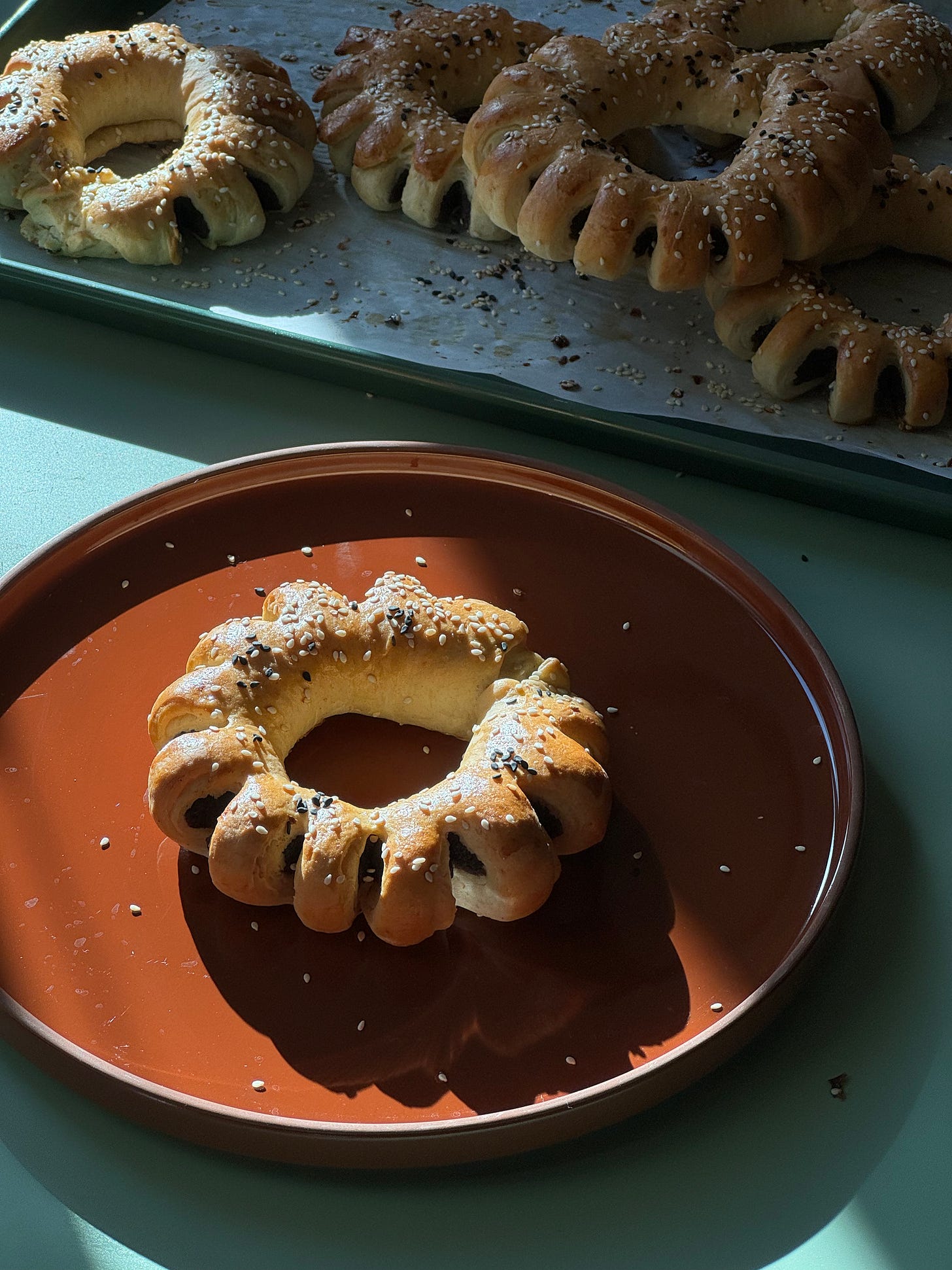Make sure to create those half cuts in the rolled dough before forming the ring - this is what creates the beautiful pattern